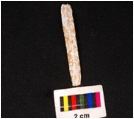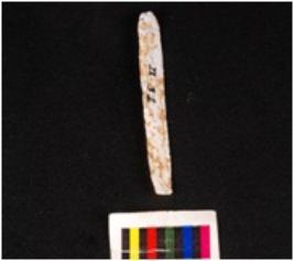| Description / विवरण | Parallel sided blade with single ridge on dorsal surface, intact proximal end with diffused bulb, use-wear marks along the cutting edge. |