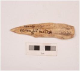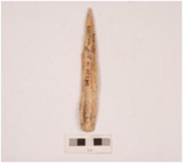 | Description / विवरण | A bonepoint, flat surface, one end is broken and rectangular in shape, one end is pointed, surface is smooth and polished. |
