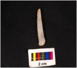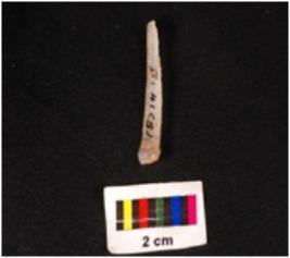 | Description / विवरण | A chalcedony blade with a mid-ridge on dorsal side, triangular section, diffused bulb on ventral side, use-wear marks along the cutting edges and the raw material was given heat treatment. |