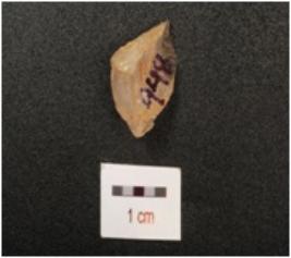 | Description / विवरण | A scraper with prominent bulb on ventral side, prepared platfrom and flake scars on dorsal side, smooth surface. |
