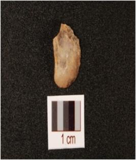 | Description / विवरण | Scraper with one side working edge, side struck, striking platform on side with a diffused positive bulb on ventral side. |