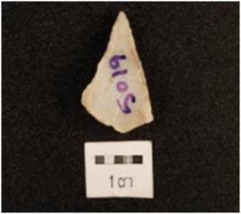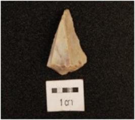 | Description / विवरण | A blade made on chert with double ridge on dorsal side, trapezoidal in section and use-wear marks on cutting edge. |