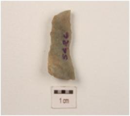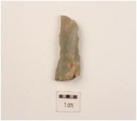 | Description / विवरण | A flake made on chert, flake scars on dorsal side, diffused bulb on ventral side, use wear marks on edges. |