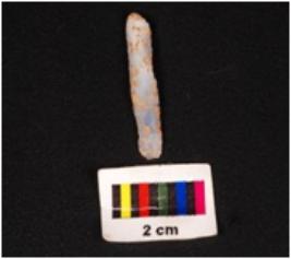 | Description / विवरण | Parallel sided blade with single ridge on dorsal surface, diffused bulb on ventral surface, use-wear marks along the working edge, core given heat treatment detouched from prepare core. |
