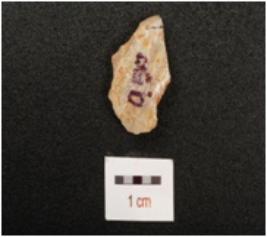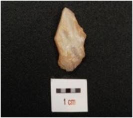 | Description / विवरण | A scraper with prominent on ventral side, flake scars on dorsal side and use wear marks on working edge. |