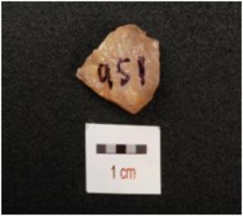 | Description / विवरण | A flake made on quartz stone, flake scars on surface, smooth surface and cortex is intact. |
