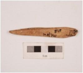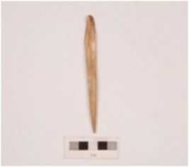 | Description / विवरण | A bone point, one end is pointed and surface is flat, moulding marks on reverse surface, smooth surface and polished. |