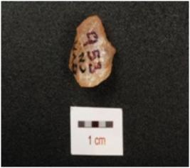 | Description / विवरण | A flake made on quartz stone, flake scars on smooth surface. |