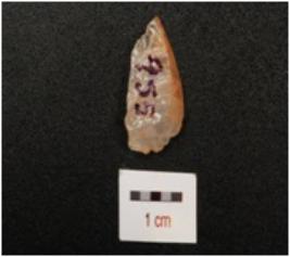 | Description / विवरण | A scraper with flake scars on dorsal side, cortex is intact, smooth surface on ventral side and prepared platform. |