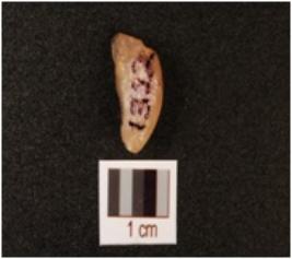 | Description / विवरण | Flake with one side cortex visible, flakings seen on other side, diffused striking platform visible on one side. |