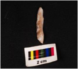 | Description / विवरण | A blade with a mid-ridge on dorsal side, triangular in section, diffused bulb on ventral side and raw material was given heat treatment. |