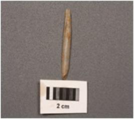 | Description / विवरण | Parallel sided blade with sharp cutting edges, diffused bulb at proximal end, distal end is broken, concave ventral surface. |