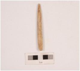 | Description / विवरण | A bone point, both end is broken, cracks on the surface, surface is smooth and polished. |