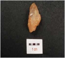 | Description / विवरण | A flake made on quartz stone, cortex is intact, diffused bulb on ventral side and smooth surface. |