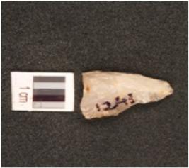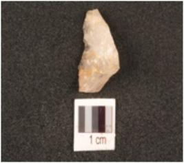| Description / विवरण | Fragament of blade, made on quartz stone, broken at proximal end, ridge on dorsal and sharp edges on bath side. |