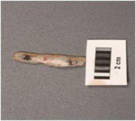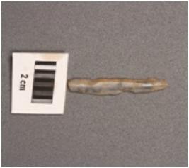| Description / विवरण | Parallel sided blade, prominent bulb with striking platform, distal end is broken, use wear marks on working edges, two vertical ridge on dorsal surface. |