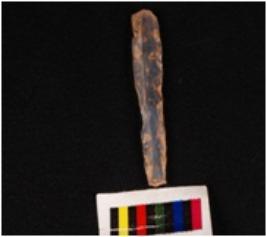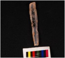 | Description / विवरण | A parallel sided blade of chalcedony with two parallel ridges on the dorsal side ,prominent bulb on the ventral side, irregular cutting edges. Trapezoidal in section. |