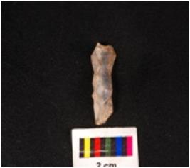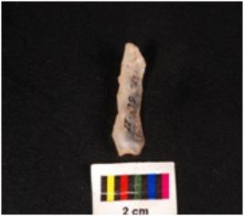 | Description / विवरण | A chalcedony blade with a weavy mid-ridge on dorsal side, diffused bulb on ventral side and use-wear marks along the cutting edges. |