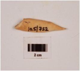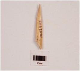 | Description / विवरण | A bone point, one end is pointed and another end is broken, flat surface, surface is smooth and polished. |
