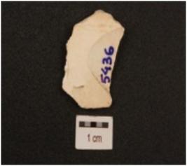 | Description / विवरण | A flake made on chert, oven in dorsal side, diffused bulb on ventral side, and use wear marks on edges. |