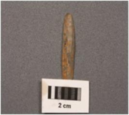 | Description / विवरण | Chalcedony parallel sided blade with a double ridge, trapezoidal section, broken from distal end. |