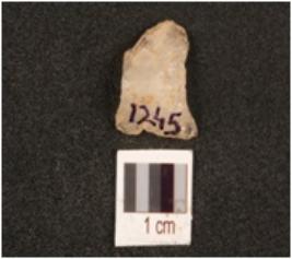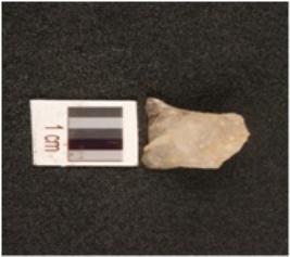 | Description / विवरण | Fragament of blade, made on quartz, sharp working edge on one side and chipped off surface. |