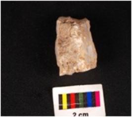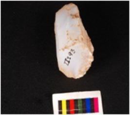 | Description / विवरण | An intact blade core with 4 blade scars cortex on dorsal surface, prepared platform on proximal end, core given fire treatment. |