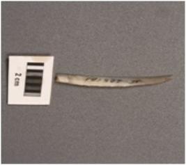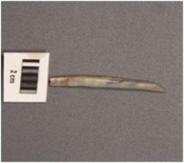 | Description / विवरण | A backed point made on chalcedony blade, retouched one side edge, a single ridge on surface, triangular section. |