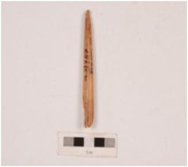 | Description / विवरण | A bone point, both end is broken, cracks on surface, natural depression on surface, surface is smooth and polished. |
