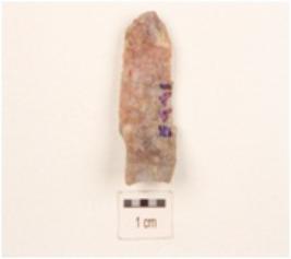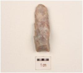 | Description / विवरण | A flake made on chert, uneven in shape, irregular surface, diffused bulb on ventral side and use-wear marks on edges. |