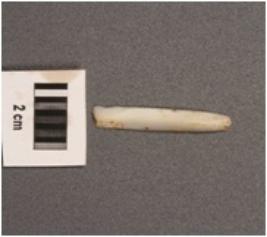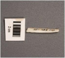 | Description / विवरण | Parallel sided blade of chert with a single mid ridge, sharp edges, triangular section. |