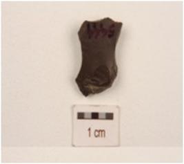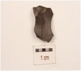 | Description / विवरण | A flake made on chert, black in colour, uneven surface and diffused bulb on ventral side. |