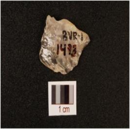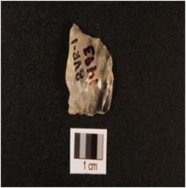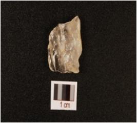 | Description / विवरण | A quartz scraper with use wear marks on working edge, chipped off bulb on ventral, preapred platform and flake scars on dorsal. |