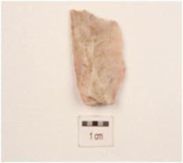 | Description / विवरण | A flake made on chert, flake scars on dorsal side and diffused bulb on ventral side, use wear marks on edges. |
