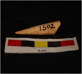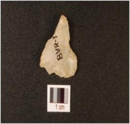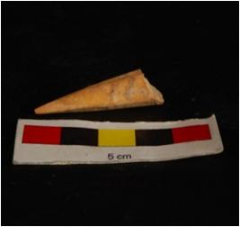 | Description / विवरण | A quartz scraper with use wear marks on working edge and flake scars on dorsal side. |