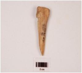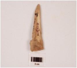 | Description / विवरण | Fragment of pointed arrow head of bone, plano convex in section, smooth surface, polished both sides. |