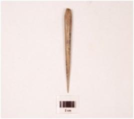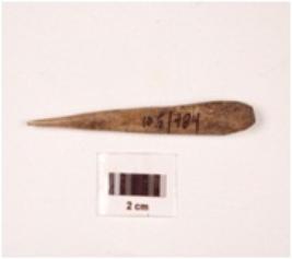 | Description / विवरण | Fragment of pointed arrow head of bone, plano covex in section, smooth surface, bone heated in fire, polished both sides. |