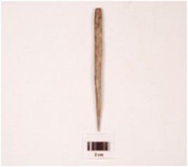 | Description / विवरण | Fragment of pointed arrow head bone, rectangular in section, polished both sides, bone heated in fire, smooth surface. |