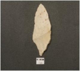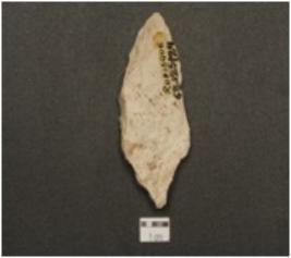 | Description / विवरण | A blade made of chert, retouched cutting edge with wear marks. |