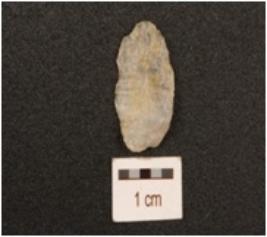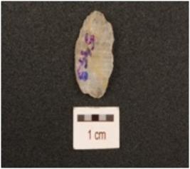 | Description / विवरण | A flake made on quartz, uneven in shape, irregular surface, irregular rectoucing marks on edges. |