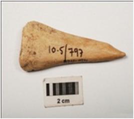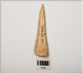 | Description / विवरण | A bone point made on a bone, smoothly polished surface both side upper and lower. |