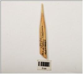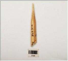 | Description / विवरण | A bone point made on a long bone, smoothly polished upper and lower surface. |