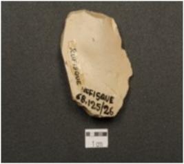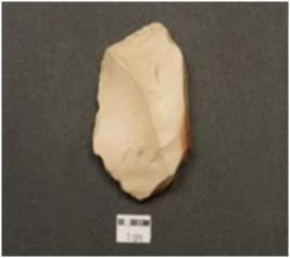| Description / विवरण | Unfinished blade of an end struck chert flake, prominent bulb on ventral surface and flake scars on dorsal surface. |