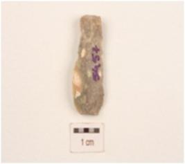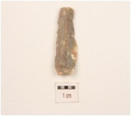| Description / विवरण | A blade made on chert, parallel in shape, mid ridge on dorsal side, diffused bulb on ventral side, use wear marks on edges. |