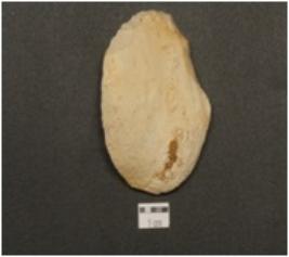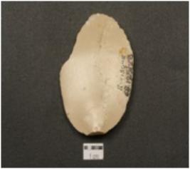 | Description / विवरण | End-scraper made of an end struck chert flake, retouched edges, prominent bulb on ventral surface and cortex on dorsal surface. |