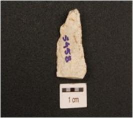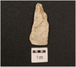 | Description / विवरण | A blade made on chert, mid ridge on dorsal side and diffused bulb on ventral side, use wear marks on edges. |