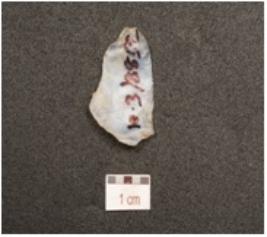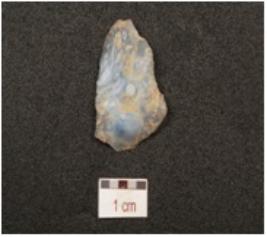 | Description / विवरण | A scraper made of chalcedony, prominent bulb on ventral blade scars on dorsal side and sharp cutting edge. |