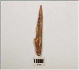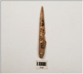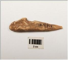 | Description / विवरण | A bone point made from a long bone one part pointed, smoothly polished surface. |