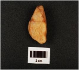 | Description / विवरण | A modified quartz pebble stone with crack marks on smooth surface. |