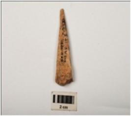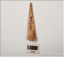 | Description / विवरण | A bone point made on a bone, smoothly polished surface both side upper and lower. |